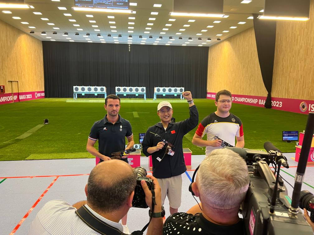 該項目比賽中,中國隊老將新人都有出色發(fā)揮。首次參加國際比賽的王鑫杰資格賽打出588環(huán)排名第一,與位居次席的李越宏攜手晉級決賽。他們兩人與劉楊攀組成的中國隊團體成績1756環(huán),追平了世界紀(jì)錄,足足領(lǐng)先亞軍德國隊16環(huán)。