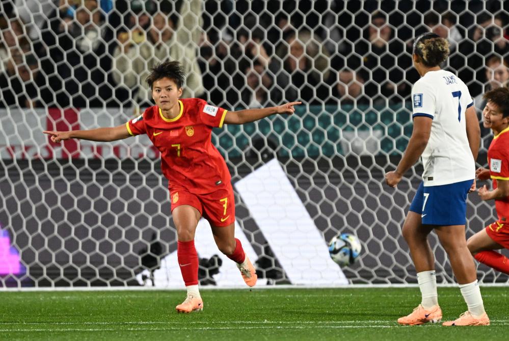8月1日,中國隊球員王霜(左)慶祝罰中點球。當(dāng)日,在澳大利亞阿德萊德舉行的2023年國際足聯(lián)女足世界杯小組賽D組比賽中,中國隊對陣英格蘭隊。新華社記者 毛思倩 攝