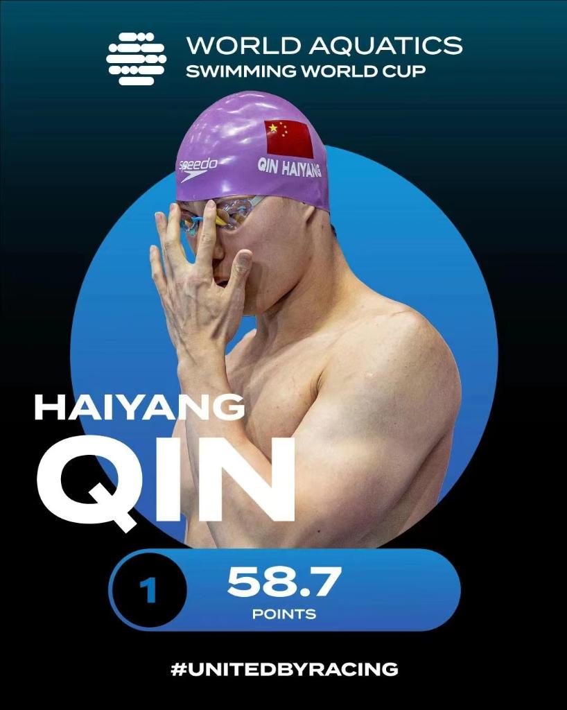 何詩蓓則以52秒02的成績改寫她9月底在杭州亞運會創(chuàng)造的女子100米自由泳亞洲紀(jì)錄52秒17,成為該項目歷史上第三快的選手,她還收獲了200米自由泳金牌和400米自由泳銅牌,在積分榜列第三名。