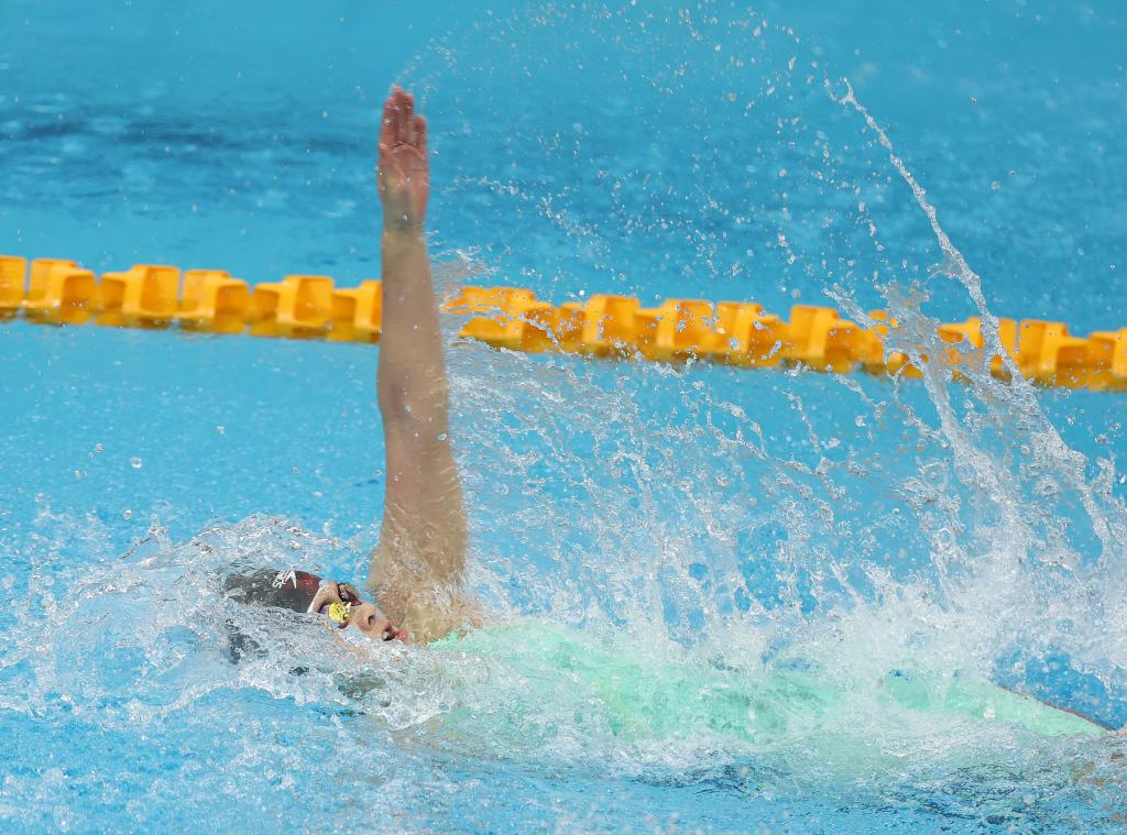 在廣西體育中心游泳跳水館,當(dāng)日進(jìn)行的游泳比賽角逐激烈。上海隊(duì)在女子大學(xué)甲組400米自由泳、男子和女子大學(xué)甲組50米仰泳、女子中學(xué)組50米仰泳、男子大學(xué)乙組100米蛙泳中摘得金牌。