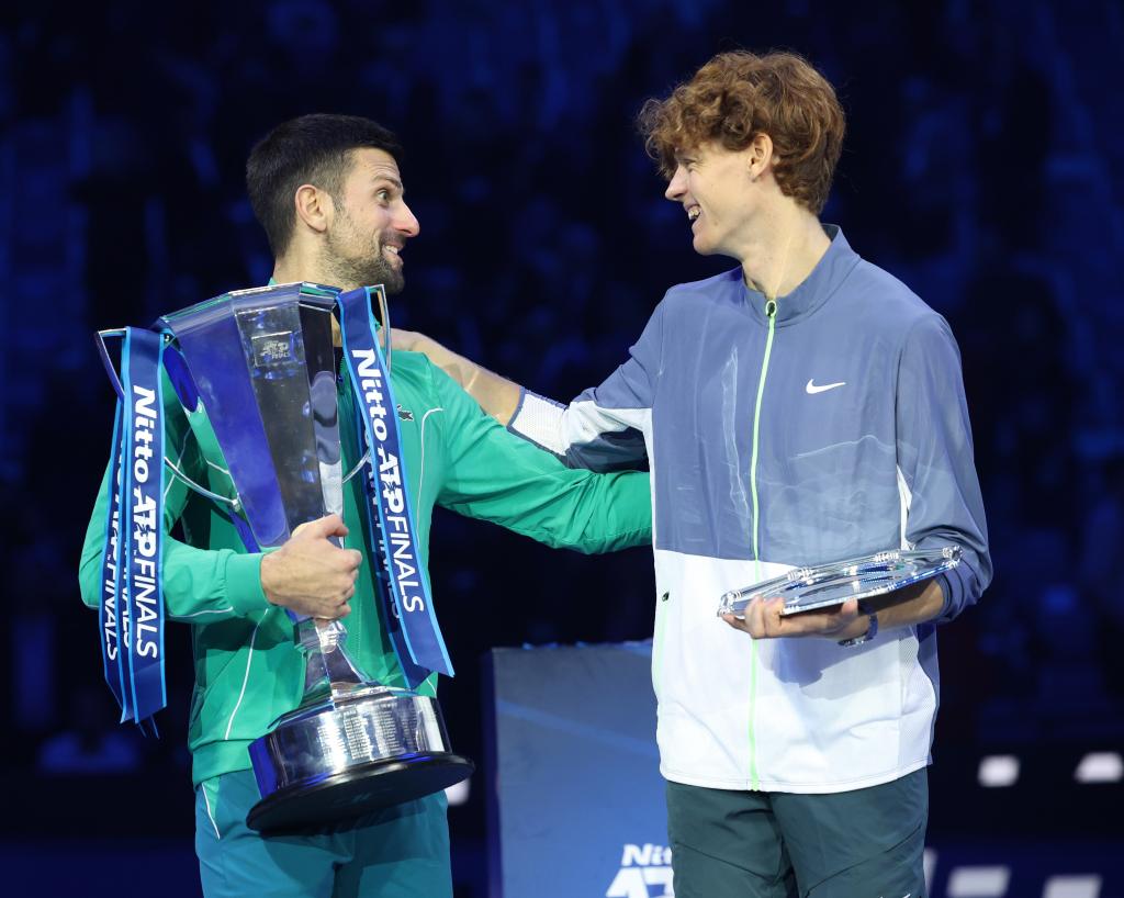 11月19日,焦科維奇(左)與辛納在決賽后。新華社發(fā)(阿爾貝托·林格里亞攝)