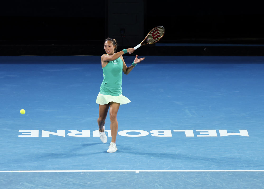 1月22日,鄭欽文在比賽中回球。新華社記者 馬平 攝