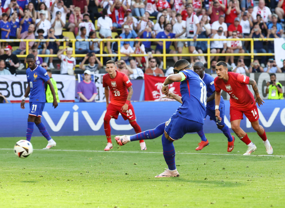 法國頭號(hào)球星姆巴佩本場復(fù)出成為全場焦點(diǎn),他在下半場通過點(diǎn)球建功,打入了個(gè)人在歐錦賽上的首粒進(jìn)球。比賽尾聲階段,波蘭隊(duì)同樣獲得一粒點(diǎn)球,萊萬多夫斯基主罰命中將比分定格為1:1。