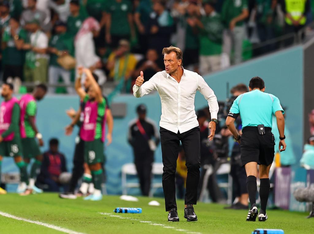 沙特隊(duì)主教練勒納爾在場(chǎng)邊指揮。 新華社記者 丁旭 攝