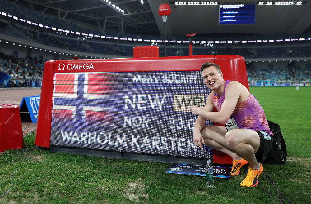 今年3月,世界田聯(lián)宣布300米欄為正式比賽項目并納入官方紀(jì)錄體系。在當(dāng)日廈門站比賽中,瓦霍爾姆一馬當(dāng)先,率先撞線,超越了2021年由他本人創(chuàng)造的男子300米欄世界最佳成績(33秒26)。