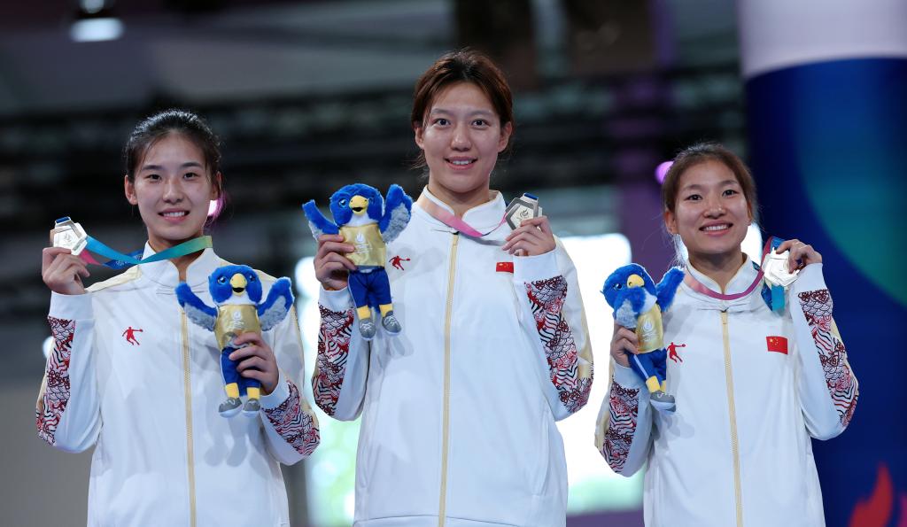 跆拳道也在當(dāng)日結(jié)束全部比賽,中國隊(duì)在該項(xiàng)目上共獲4金2銀3銅。在跆拳道女子團(tuán)體競技比賽中,由郭清、穆文喆、邢佳妮組成的中國隊(duì)延續(xù)強(qiáng)勢表現(xiàn),從16強(qiáng)賽一路以三場2:0橫掃晉級,并在當(dāng)日決賽中以同樣比分戰(zhàn)勝韓國隊(duì),奪得冠軍。