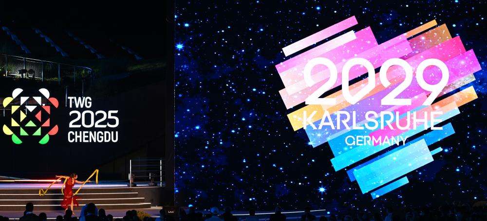 成都世運(yùn)會(huì)組委會(huì)主席施小琳、國(guó)際世界運(yùn)動(dòng)會(huì)協(xié)會(huì)主席何塞·佩魯雷納先后致辭,向?yàn)楸緦檬肋\(yùn)會(huì)圓滿成功作出貢獻(xiàn)的所有人員表示感謝。下屆世運(yùn)會(huì)舉辦城市德國(guó)卡爾斯魯厄市市長(zhǎng)弗蘭克·門(mén)特魯普致辭,熱情邀請(qǐng)全球賓客四年后相聚卡爾斯魯厄。