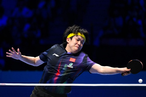 3月31日,中國隊(duì)選手王楚欽在比賽中回球。新華社發(fā)(張金加攝)