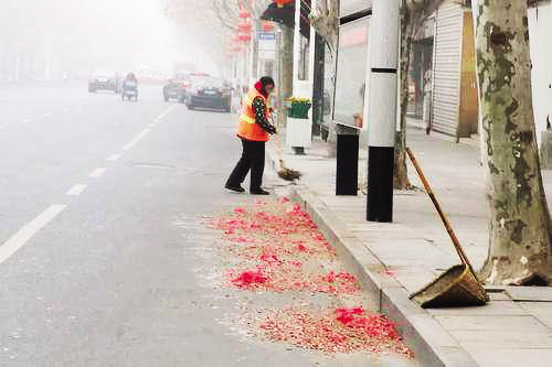 45歲的環(huán)衛(wèi)工張秀生告訴筆者,“越是節(jié)假日,越不能停歇,把路面收拾得干干凈凈,老百姓走著舒坦,我心里也高興。”這幾天風(fēng)大天冷,張師傅卻干得特別有勁。不到2個(gè)小時(shí),城區(qū)健康中街周邊的垃圾全部清理干凈?!白蠲Φ臅r(shí)候就是下午四五點(diǎn)鐘,路上的垃圾數(shù)量明顯增加?!睆垘煾嫡f(shuō),有時(shí)他一直忙到晚上6點(diǎn)才回家,第二天早上,不到4點(diǎn)他就從床上爬起來(lái)了。據(jù)悉,春節(jié)期間,城區(qū)的環(huán)衛(wèi)工人基本全部在崗,許多環(huán)衛(wèi)工人甚至提前到崗清掃街道,確保市容整潔。張師傅希望市民們春節(jié)燃放鞭炮時(shí)不僅要注意安全,還要保護(hù)環(huán)境衛(wèi)生。