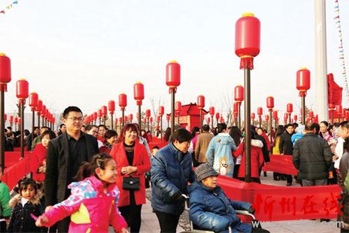 煥然一新的寬敞場地,統(tǒng)一的燈桿、火紅的燈籠、嗩吶的樂聲、動人的傳說……河曲九曲黃河燈游會開門迎客了。方圓十幾里的河曲人扶老攜幼轉(zhuǎn)這個燈游會,沾喜氣。伴著舒緩的音樂,一撥一撥的游客穿行于燈陣中,或觀賞彩燈,或擊鼓祝福,或拍照留念。