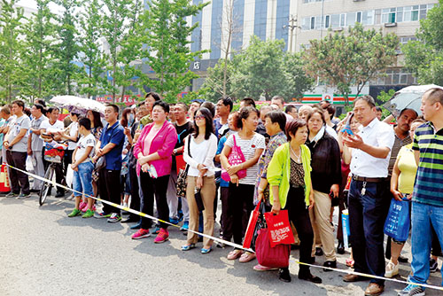 因?yàn)橹锌?,考場外才有聚在一起的不同人群;因?yàn)榍橄悼忌?,所有人的?jiān)守,都與愛有關(guān)。于是一年一度的考場外,愛,成為一道動(dòng)人的風(fēng)景。