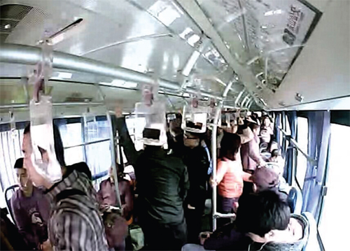 南京709路公交車3月13日監(jiān)控視頻截圖(左一為智杰)