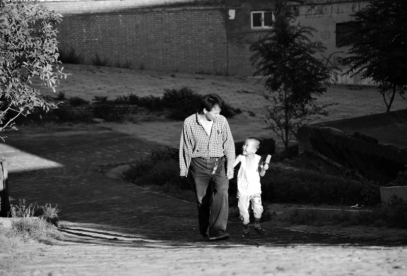 王貴生給兒子買了一根雪糕,小志偉樂開了花。