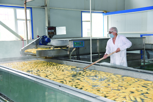 加工生產水果玉米的熱烈場面