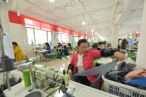 下茹越鄉(xiāng)的貧困戶蘇金娥是這家工廠的員工,“以前沒有工作,家里頭也挺困難,這會(huì)兒政府開設(shè)這個(gè)項(xiàng)目,我就過來試試,結(jié)果也挺好...這里有師傅教,每天可以學(xué)習(xí)...這幾天也熟練啦,每天可以做100多件,今年肯定能脫貧?!辈簧蒲赞o的蘇金娥在提到這份工作時(shí)滿臉笑容,斷斷續(xù)續(xù)的敘述中可以感受到她那喜悅的心情。