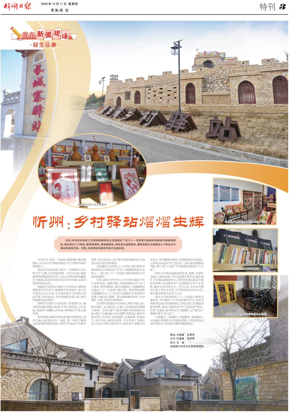 2025年忻州市政府工作報(bào)告部署的民生實(shí)事提出了沿三個(gè)一號(hào)旅游公路建設(shè)保德縣印象故城驛站,偏關(guān)縣紅門口驛站、乾坤灣驛站、樺林堡驛站,神池縣長城寨驛站,繁峙縣韓莊長城驛站6個(gè)特色鄉(xiāng)村驛站的建設(shè)任務(wù)。目前,這些驛站的建設(shè)任務(wù)已全部完成。