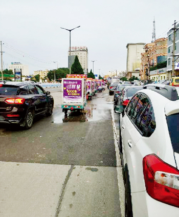 廣告宣傳車頻繁出現(xiàn)在城區(qū)各主要街道上,走走停停,造成交通擁堵及城市噪音污染。希望相關(guān)部門進(jìn)行監(jiān)管。一網(wǎng)友攝于7月23日