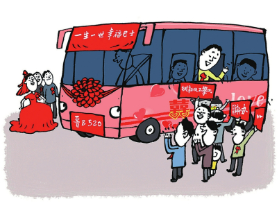 公交車(chē)變婚車(chē),折射婚俗觀念之變。告別奢華排場(chǎng),不搞虛榮攀比,選擇公交車(chē)作為婚車(chē),既保留了婚禮的儀式感,又摒棄了不必要的鋪張浪費(fèi),讓婚禮回歸情感表達(dá)的本質(zhì)。這一務(wù)實(shí)而富有新意的選擇,不僅體現(xiàn)了當(dāng)代青年追求個(gè)性、注重實(shí)效的價(jià)值取向,更是對(duì)鋪張浪費(fèi)、天價(jià)彩禮等陋習(xí)的自覺(jué)抵制,詮釋著簡(jiǎn)約適度、綠色文明的婚俗新風(fēng)。