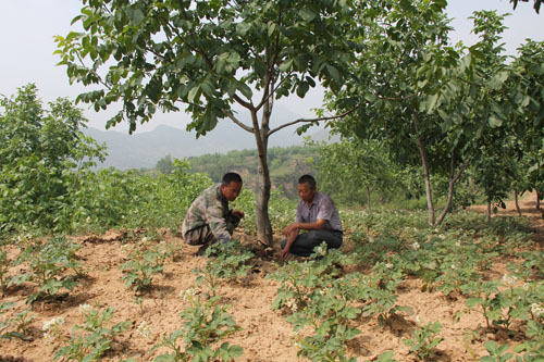 自古獨(dú)居一地的山藥蛋,如今又種上了核桃樹(shù)。這是五臺(tái)縣陽(yáng)白鄉(xiāng)桑院村從五臺(tái)農(nóng)商銀行陽(yáng)白支行貸款70萬(wàn)元,實(shí)施科學(xué)種田的又一“絕招”。一般是1畝山藥蛋地間種10株核桃樹(shù)。畝產(chǎn)山藥蛋600公斤,收入960元。核桃樹(shù)畝產(chǎn)70公斤,收入1540元。共收入2500元,較單產(chǎn)山藥蛋900公斤的1440元增收58%。最大限度地發(fā)揮了坡地利用率。今年全村核桃樹(shù)“嫁”山藥蛋280畝,年產(chǎn)值可望達(dá)到70萬(wàn)元,增收25.2萬(wàn)元。(金俊賢 鄭光)