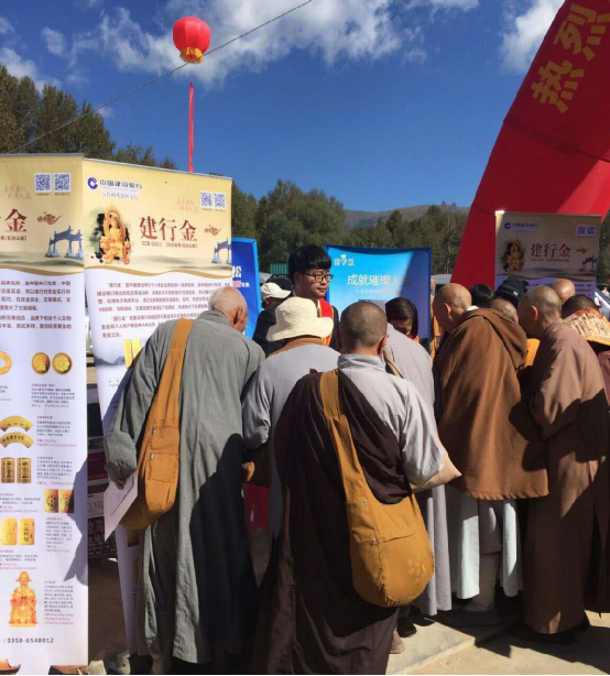 建行忻州五臺山支行借助五臺山聞名中外佛教圣地的美譽,在國慶小長假期間,宣傳建行金融產品和金融知識,在人頭攢動中設立展臺,展示五臺山金、五臺山卡,受到了游客的“熱捧”。