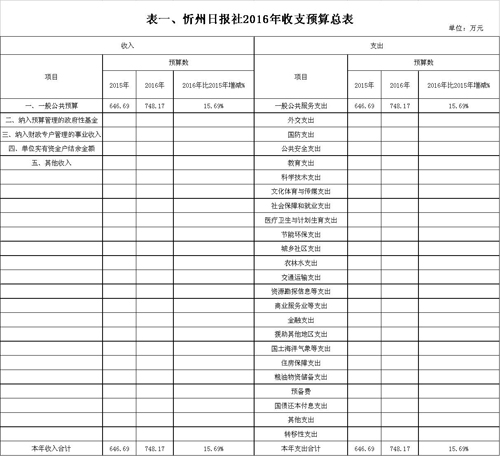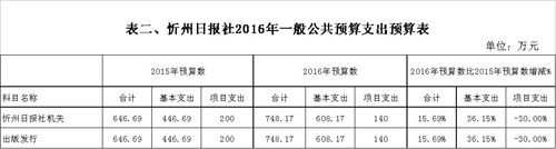 忻州日報社2016年度部門預算及“三公”經費預算公開情況