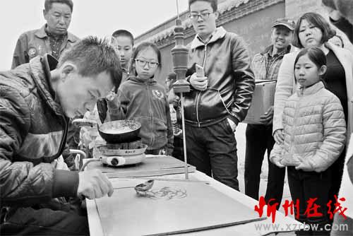 4月4日,在原平市天牙山風景區(qū)一位農民正在制作糖人。當日是清明節(jié),不少游人紛紛走出家門踏青賞花,有許多人圍在農民身邊要求買糖人,這位農民制作糖人手法熟練,既豐富了景區(qū)市場,又增加了個人收入。 褚震 攝