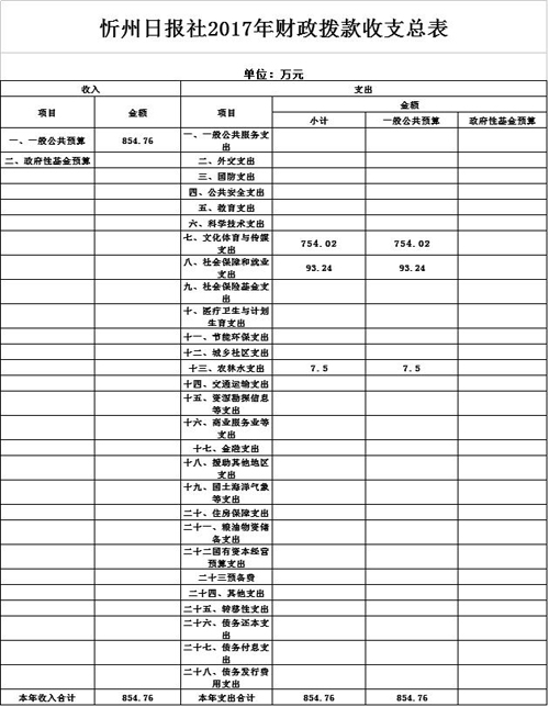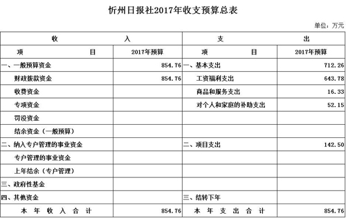 忻州日報社2017年度部門預(yù)算及“三公”經(jīng)費(fèi)預(yù)算公開情況