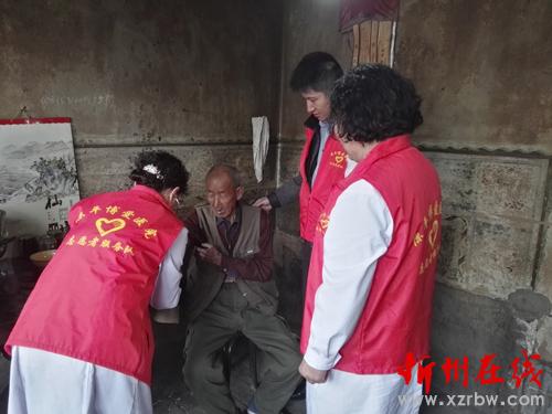 志愿者們不僅給老人們送去了生活品,同時還利用自己醫(yī)護人員的優(yōu)勢為他們做了簡單的身體檢查,為老人們提供了許多健康咨詢。