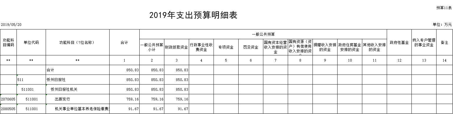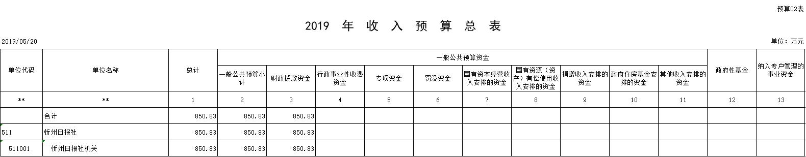 忻州日報社2019年收入預(yù)算850.83萬元,比2018年增加24.6萬元。