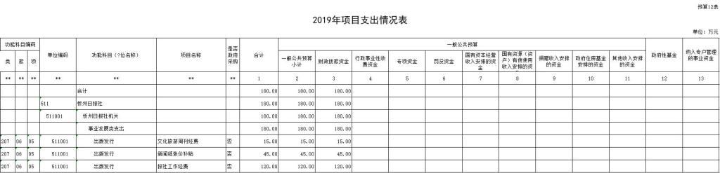 12、支出預(yù)算明細表
