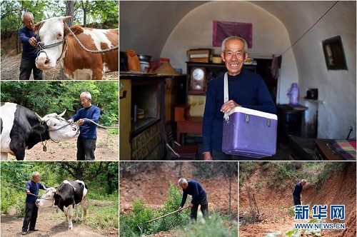 曹晉忠,男,1949年出生,山西省長(zhǎng)治市武鄉(xiāng)縣鋪上村人。曹晉忠是村里的動(dòng)物防疫員,自己種了4畝玉米、2畝小米。因?yàn)槠拮映D昱P病在床,曹晉忠一家是該村的精準(zhǔn)扶貧對(duì)象。曹晉忠說,醫(yī)護(hù)人員經(jīng)常上門進(jìn)行健康狀況隨訪,駐村工作隊(duì)也常來(lái)家里幫忙,現(xiàn)在看病不發(fā)愁,干活有人幫,生活挺好的。 右上:曹晉忠肖像;左上、左中、左下:曹晉忠在給村里的牛做檢查;下中、下右:曹晉忠在地里干農(nóng)活(拼版照片,6月12日攝)。 地處晉東南的山西省長(zhǎng)治市,位于由太行山、太岳山環(huán)繞而成的上黨盆地中。在群山中、崖壁上,許多村莊自然條件惡劣,基礎(chǔ)設(shè)施落后,脫貧致富是大山深處人們的迫切心愿。 近年來(lái),一場(chǎng)場(chǎng)脫貧攻堅(jiān)戰(zhàn),在一個(gè)個(gè)深山村打響。政府全力探索脫貧路徑的同時(shí),山區(qū)百姓因地制宜,靠自己的雙手和智慧走上致富路,交出了一份扎實(shí)的脫貧答卷。 記者在太行山、太岳山一路尋訪,記錄下多位70歲老人的生活。這些共和國(guó)的同齡人,親歷了山鄉(xiāng)的巨變,見證著長(zhǎng)治山區(qū)脫貧攻堅(jiān)偉大工程的一步步推進(jìn)。 新華社記者 詹彥 攝