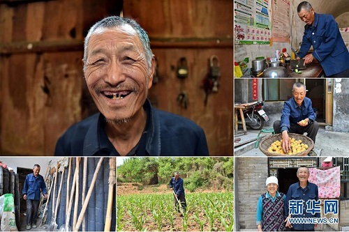 李增福,男,1949年出生,山西省長治市潞城區(qū)上黃村人,自己和老伴都患有較嚴(yán)重的慢性病,家里6口人靠種植6畝玉米地為生,生活貧困。2016年女兒和女婿參加了村里組織的脫貧技能培訓(xùn)并開了一家特色面食店,家里的日子逐漸好了起來。 左上:李增福肖像;右上:李增福在切菜;右中:李增福在晾曬剛摘的杏;右下:李增福和老伴合影;下中:李增福在田地里鋤草;下左:李增福在挑選農(nóng)具(拼版照片,6月11日攝)。 地處晉東南的山西省長治市,位于由太行山、太岳山環(huán)繞而成的上黨盆地中。在群山中、崖壁上,許多村莊自然條件惡劣,基礎(chǔ)設(shè)施落后,脫貧致富是大山深處人們的迫切心愿。 近年來,一場場脫貧攻堅戰(zhàn),在一個個深山村打響。政府全力探索脫貧路徑的同時,山區(qū)百姓因地制宜,靠自己的雙手和智慧走上致富路,交出了一份扎實(shí)的脫貧答卷。 記者在太行山、太岳山一路尋訪,記錄下多位70歲老人的生活。這些共和國的同齡人,親歷了山鄉(xiāng)的巨變,見證著長治山區(qū)脫貧攻堅偉大工程的一步步推進(jìn)。 新華社記者 曹陽 攝