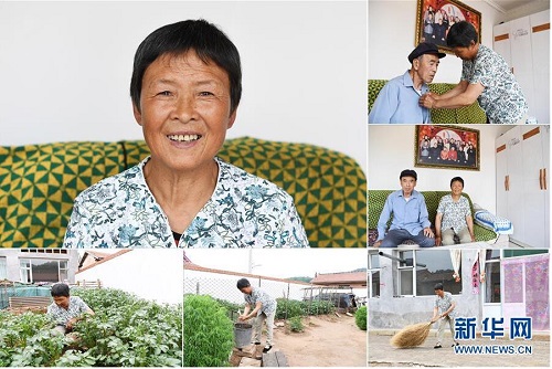 王月蘭,女,1949年出生,山西省長治市沁源縣南峪村人。因老伴劉光明身患重病,王月蘭一家于2018年被納入建檔立卡貧困戶。在健康扶貧政策的幫助下,老伴看病的巨額醫(yī)藥費用報銷比例超過80%。王月蘭說,希望老伴身體越來越好,一家的生活也越來越好。 左上:王月蘭肖像;右上:王月蘭在家中照顧老伴劉光明;右中:王月蘭(右)和老伴劉光明在家中合影;下右:王月蘭在家中打掃院子;下中:王月蘭在家里用自來水洗手;下左:王月蘭在家中管護蔬菜(拼版照片,6月20日攝)。 地處晉東南的山西省長治市,位于由太行山、太岳山環(huán)繞而成的上黨盆地中。在群山中、崖壁上,許多村莊自然條件惡劣,基礎(chǔ)設(shè)施落后,脫貧致富是大山深處人們的迫切心愿。 近年來,一場場脫貧攻堅戰(zhàn),在一個個深山村打響。政府全力探索脫貧路徑的同時,山區(qū)百姓因地制宜,靠自己的雙手和智慧走上致富路,交出了一份扎實的脫貧答卷。 記者在太行山、太岳山一路尋訪,記錄下多位70歲老人的生活。這些共和國的同齡人,親歷了山鄉(xiāng)的巨變,見證著長治山區(qū)脫貧攻堅偉大工程的一步步推進。 新華社記者 楊晨光 攝