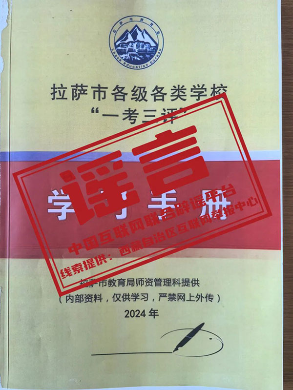 詳情:近期,西藏自治區(qū)拉薩市教育局接到教師反饋,稱有人以拉薩市教育局師資管理科名義,以50元/本的價格,售賣2024年《拉薩市各級各類學?!耙豢既u”學習手冊》。對此,拉薩市教育局發(fā)布辟謠聲明稱:我局2024年未印發(fā)“一考三評”學習手冊,未委托任何機構和個人以任何形式向教師售賣2024年《拉薩市各級各類學校“一考三評”學習手冊》。請廣大教師保持高度警惕,不信謠、不傳謠、不造謠,謹防上當受騙。(來源:“西藏舉報”微信公眾號、“拉薩教育”微信公眾號)