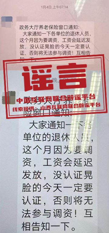 謠言:山西大同“退休人員今天一定要認(rèn)證,否則將無法參與調(diào)資”?