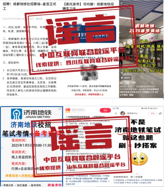 謠言:成都地鐵招聘“提前預(yù)定名額”?濟(jì)南地鐵校園招聘有“真題”?