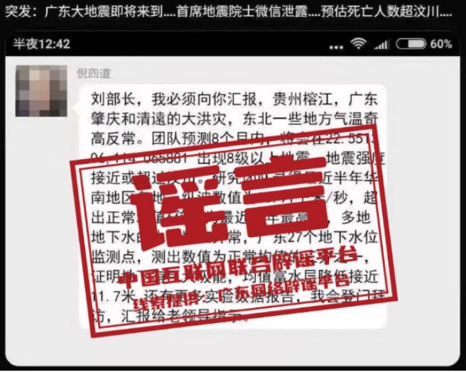 辟謠:網(wǎng)傳院士預(yù)測廣東將發(fā)生8級(jí)以上大地震?謠言!已報(bào)警