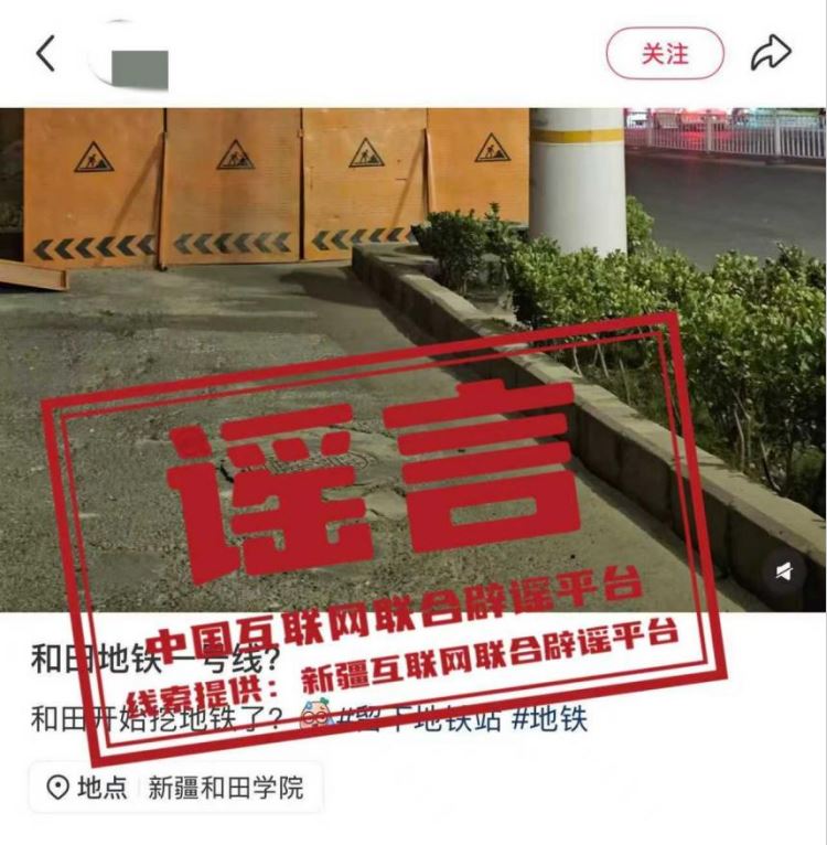 真相:近日,有網(wǎng)民發(fā)布消息稱“新疆和田要建地鐵一號線?開始挖地鐵了?”,并配以道路施工圖片,引發(fā)關注。經(jīng)和田市交通運輸局核實,網(wǎng)傳信息系謠言,截至目前,未收到任何關于和田市開挖地鐵的工作通知或確認信息。(來源:“新疆網(wǎng)絡辟謠”微信公眾號)