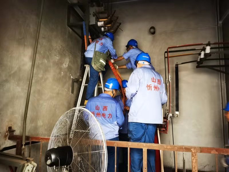 7月27日早8時,國網(wǎng)忻州供電公司保供電小分隊9人奔赴現(xiàn)場,進(jìn)入小區(qū)配電室的那一瞬間,就被眼前的場景驚到了,配電室內(nèi)地面浸水導(dǎo)致主變地基下沉、變壓器基礎(chǔ)嚴(yán)重傾斜,與之相連的高壓側(cè)設(shè)備基本損壞,母排變形、融管炸裂、觸頭損壞,目測這里的工作任務(wù)量估計得干到晚上了。