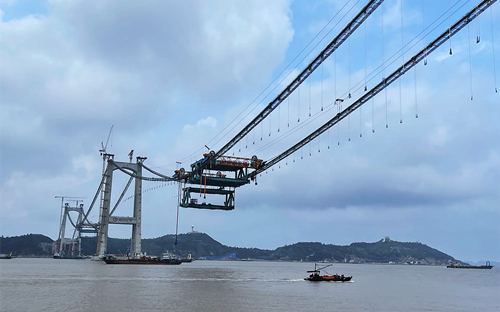 “大橋主梁最大節(jié)段重量達(dá)到813噸,國內(nèi)現(xiàn)有纜載吊機根本無法滿足單臺起吊需求。”潘濟(jì)向記者表示,為解決這一難題,項目創(chuàng)新研制國內(nèi)首套1000噸級纜載吊機,搭載人機界面、傳感器技術(shù)、通訊技術(shù)等技術(shù),把安裝精度誤差控制在5毫米內(nèi),確保施工過程安全高效。