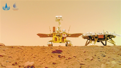 距離火星表面還有1.5千米時,一路保護著我們、像龜甲一樣的背罩連帶著降落傘被拋掉。與此同時,主發(fā)動機打開,強大的反作用力使我們的速度逐漸降低,光學(xué)成像敏感器開始對下方進行成像。在距離火星表面還剩100米的時候,著陸平臺懸浮在空中,對腳下的地表進行激光三維成像,選擇最佳的著陸位置。位置確定后,著陸平臺在主發(fā)動機的精妙控制下開始緩緩下降。終于,隨著一團塵埃被氣流濺起,著陸平臺的4只腿穩(wěn)穩(wěn)落在了火星烏托邦平原。火星終于迎來了它的第一位中國客人。
