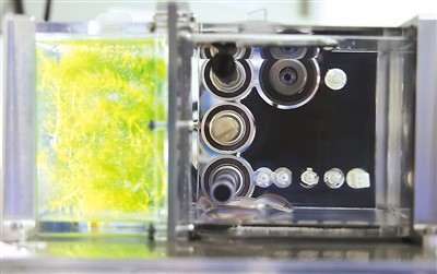 在問(wèn)天艙生命生態(tài)實(shí)驗(yàn)柜小型受控生命生態(tài)實(shí)驗(yàn)?zāi)K中,魚(yú)類(lèi)、植物和微生物協(xié)同參與——藻類(lèi)光合作用產(chǎn)生的氧氣供斑馬魚(yú)呼吸,魚(yú)呼出的二氧化碳供藻類(lèi)進(jìn)行光合作用,進(jìn)食產(chǎn)生的糞便則提供了藻類(lèi)生長(zhǎng)的養(yǎng)料。在飲食方面,科學(xué)家專(zhuān)門(mén)設(shè)計(jì)了魚(yú)食,用注射器推進(jìn)“魚(yú)缸”。
