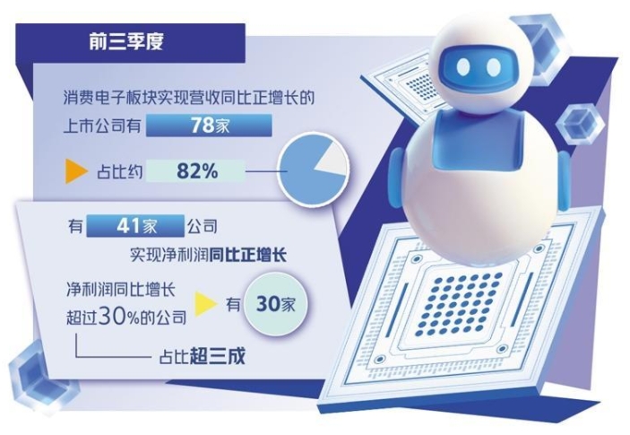 受益于AI等新技術的驅動,以及“以舊換新”等促消費政策的落地見效,今年以來,消費電子市場持續(xù)復蘇,帶動相關板塊上市公司業(yè)績回暖,交出企穩(wěn)向好的三季度答卷,一批上市公司前三季度實現營收、凈利雙提升。