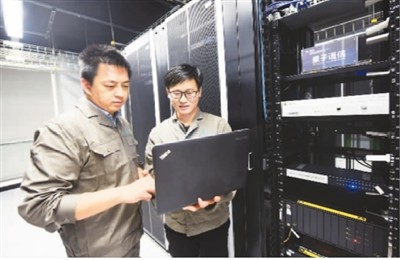 11月2日,國網(wǎng)杭州供電公司信息通信分公司工作人員在通信機房檢查量子通信設備。(人民視覺 龍巍 攝)