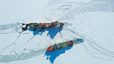 “這次陸緣冰接近2米的厚度,遠(yuǎn)遠(yuǎn)超出了‘雪龍’號(hào)破冰能力,也超過(guò)了‘雪龍2’號(hào)設(shè)計(jì)的1.5米破冰水平?!薄把?”號(hào)船長(zhǎng)肖志民告訴記者,面對(duì)挑戰(zhàn),科考隊(duì)精心準(zhǔn)備,利用直升機(jī)和無(wú)人機(jī)開展多次探冰勘察,制定破冰方案。通過(guò)艏艉向連續(xù)破冰、艏向沖撞破冰的方式,“雪龍2”號(hào)僅用2天時(shí)間,就開辟出長(zhǎng)度約16.5海里的陸緣冰區(qū)航道,最終抵達(dá)預(yù)定卸貨點(diǎn),并將“雪龍”號(hào)引航至卸貨點(diǎn)。