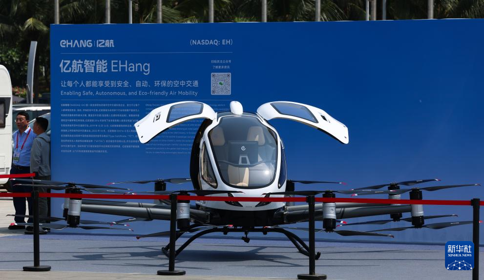 “8個軸、16個螺旋槳”,場館外一架造型奇特的“無人機”引人關注,這是參展商億航智能控股有限公司帶來的一款無人駕駛載人航空器。該公司副總裁賀天星說,“我們剛剛獲得全球首張無人駕駛載人航空器生產許可證,為新型無人駕駛航空器提供了一個適航標準和參考樣本。”