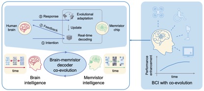 天津大學與清華大學的聯(lián)合研究團隊針對這一難題,發(fā)現(xiàn)腦電信號的非平穩(wěn)特性與任務腦電演變密切相關?;诖?,他們創(chuàng)新性地提出了“雙環(huán)路腦機協(xié)同演進框架”,并通過憶阻器神經(jīng)形態(tài)器件加以實現(xiàn)。在“雙環(huán)路”框架下,腦與機的學習環(huán)路相互協(xié)同,共同促進系統(tǒng)性能的提升。