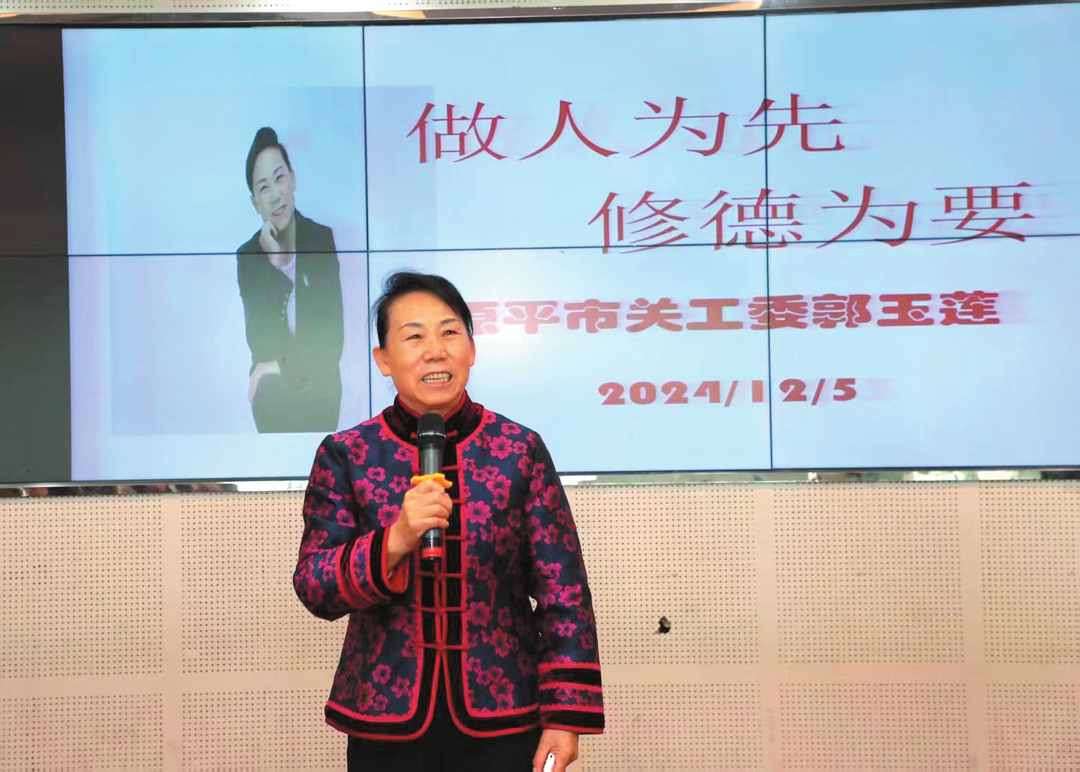 今年2月下旬,原平市婦聯(lián)在吉祥街道社區(qū)舉辦“玫瑰悅讀”課堂,作為主講老師,郭玉蓮為婦聯(lián)干部和50多名家長,作了以“誡子書”為主題的講座,引導(dǎo)大家傳承優(yōu)良家訓(xùn),弘揚美好家風(fēng)。