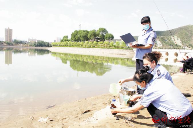 為保障地表水水質(zhì)穩(wěn)定達標,市生態(tài)環(huán)境局五臺分局的環(huán)保衛(wèi)士們冒著酷暑,頂著熱浪,穿行在河流、水庫之間,取水、化驗、存檔,為制定水污染防治措施提供第一手資料。圖為該分局工作人員在唐家灣水庫提取水樣。金俊賢 攝