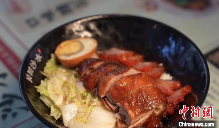 店內(nèi)靠街邊一角,港式燒臘明檔會(huì)出品咸蛋叉燒、燒鵝等港式產(chǎn)品。港式燒臘加長(zhǎng)沙米粉的組合,不僅讓許多長(zhǎng)沙人贊不絕口,也吸引眾多在湘生活的港人聞香而來(lái)。